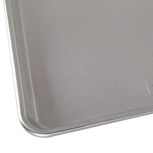 - Extra-large capacity pan holds more food than a standard sheet, allowing you to bake more in each batch. Foods bake and brown evenly due to aluminum’s superior heat conductivity. Reinforced encapsulated steel rim prevents warping and adds strength